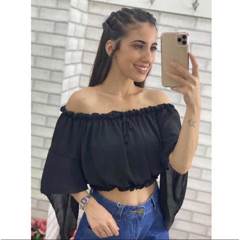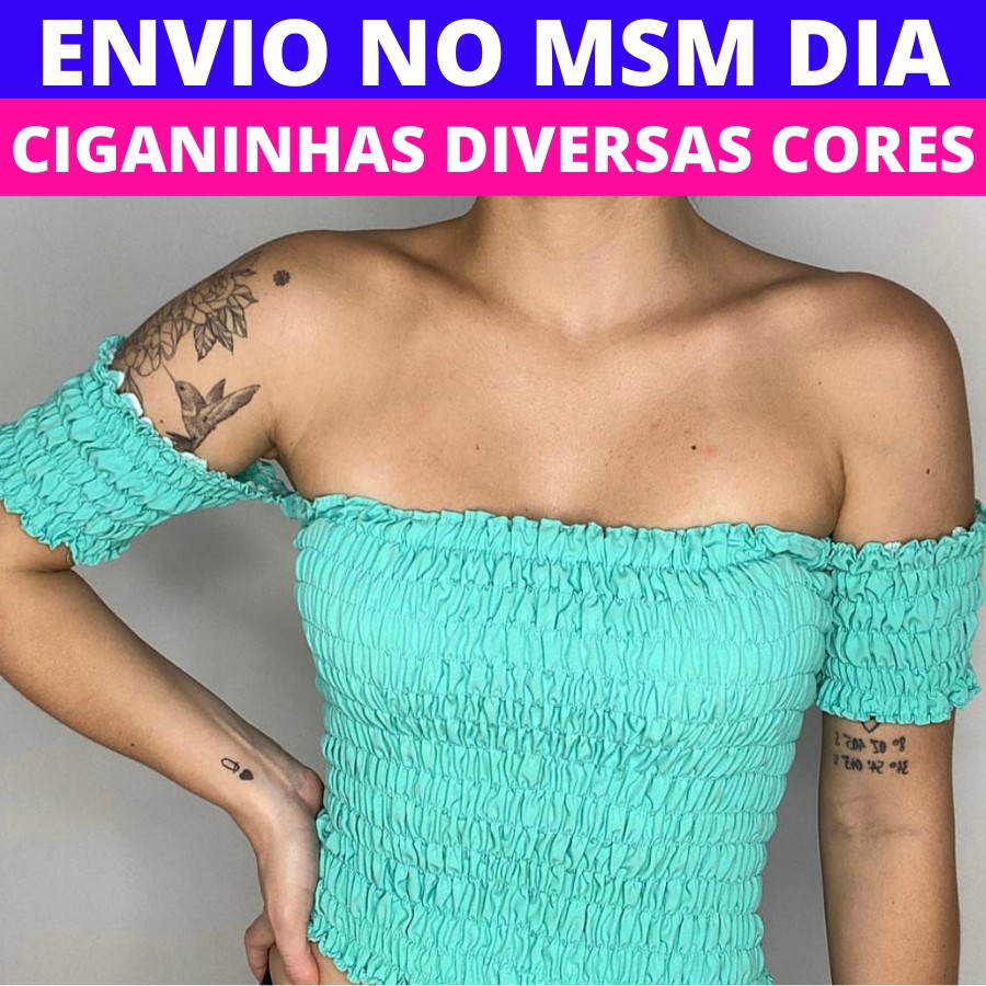 Blusinha Sanfona Ciganinha Cropped Manga Curta Ombro a Ombro Diversas Cores Blusa Feminina