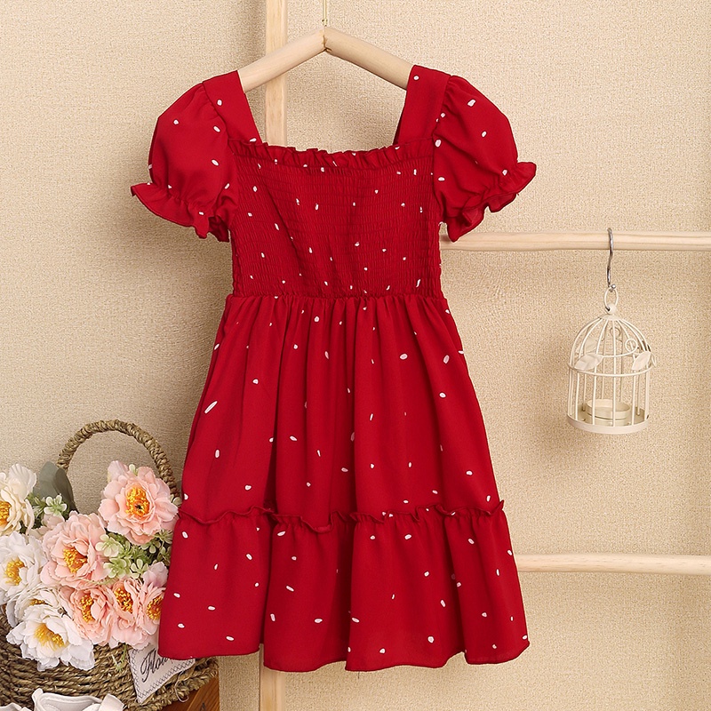 SIYYIS Vestido Para Meninas 2-6 Anos De Princesa Bebê Polka Dotted Cor Sólida Shirred Manga Curta Patchwork Festival Cerimônia Concurso Festa De Aniversário