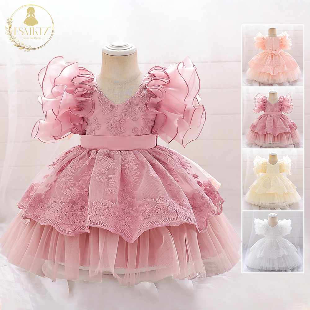 [Vestido De Aniversário Para Meninas Bebê Baptizado Em Camadas De Renda Princesa Noiva 0-2 Anos
