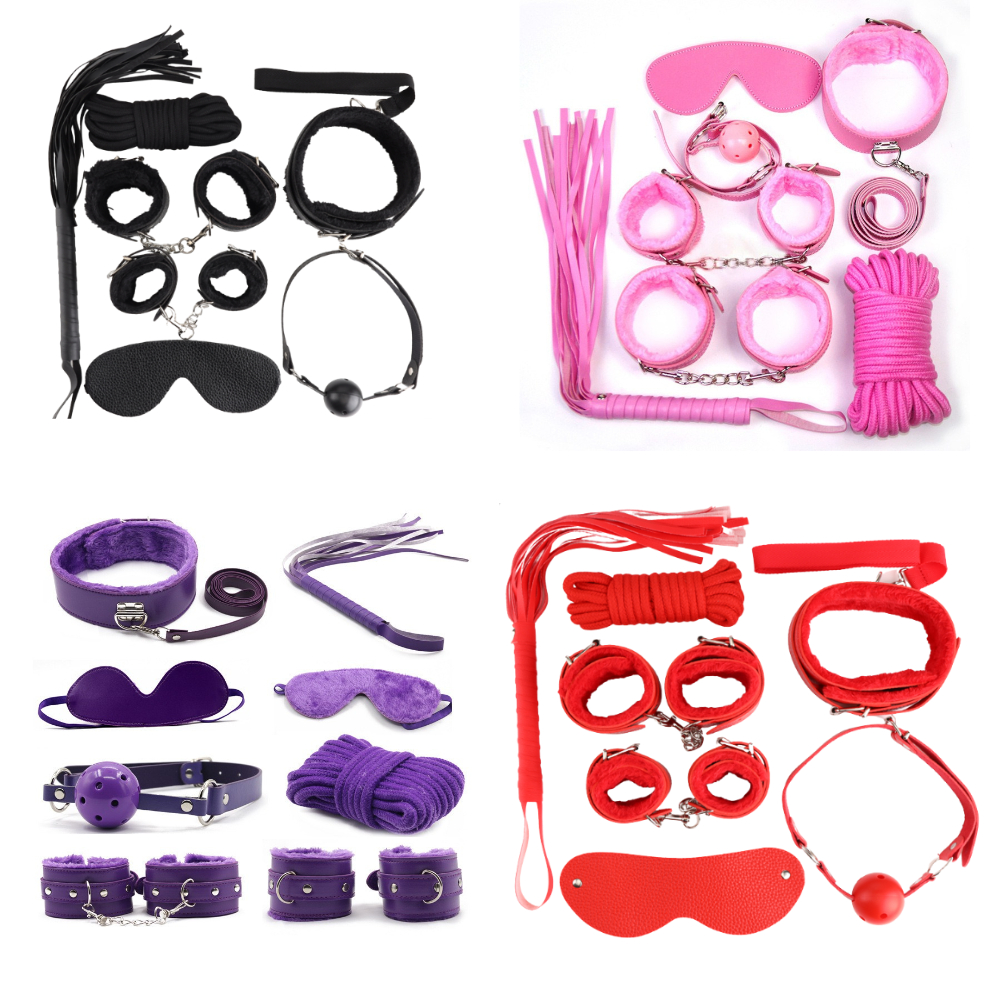 Kit Bondage Com 8 Peças Pelúcia Algema, Tornozeleira, Venda, Corda, Coleira e Guia Revestidas Em Couro Sintético Por Fora E Pelúcia Por Dentro