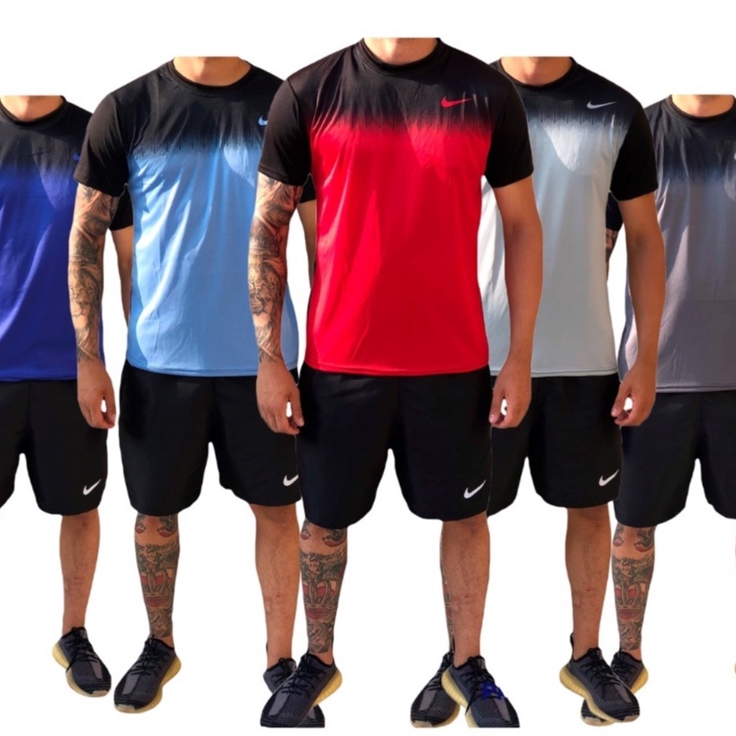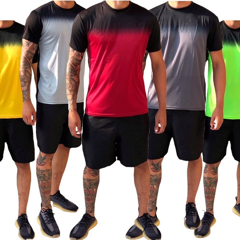 Promoção! Kit Camiseta Dry Fit + Bermuda Masculina P/Academia Corrida Esporte Futebol