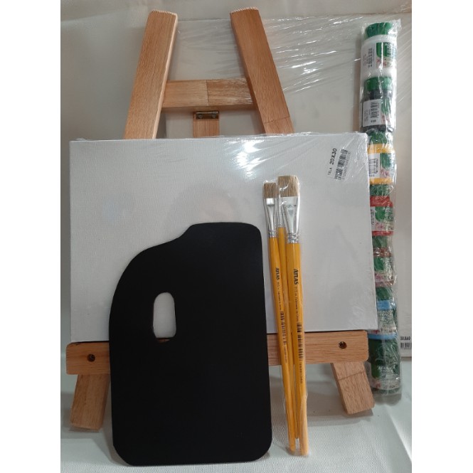 Kit De Pintura com cavalete retratil de chão 6 tintas 2 telas 30x40 para pintura e pincel e paleta para tintas