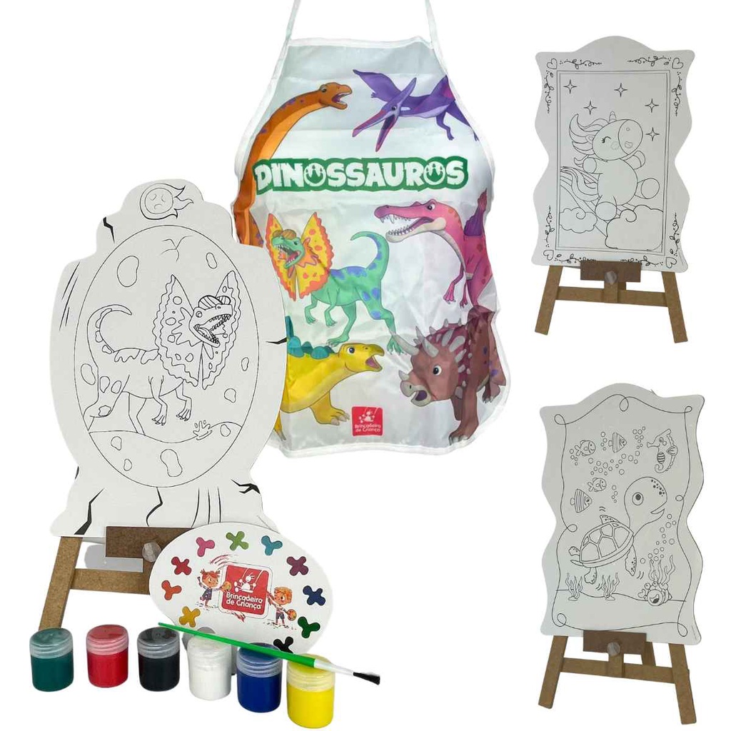 Super Kit Pintura Criança Com 4 Telas Cavalete + Avental + 6 Tintas - Brincadeira De Criança