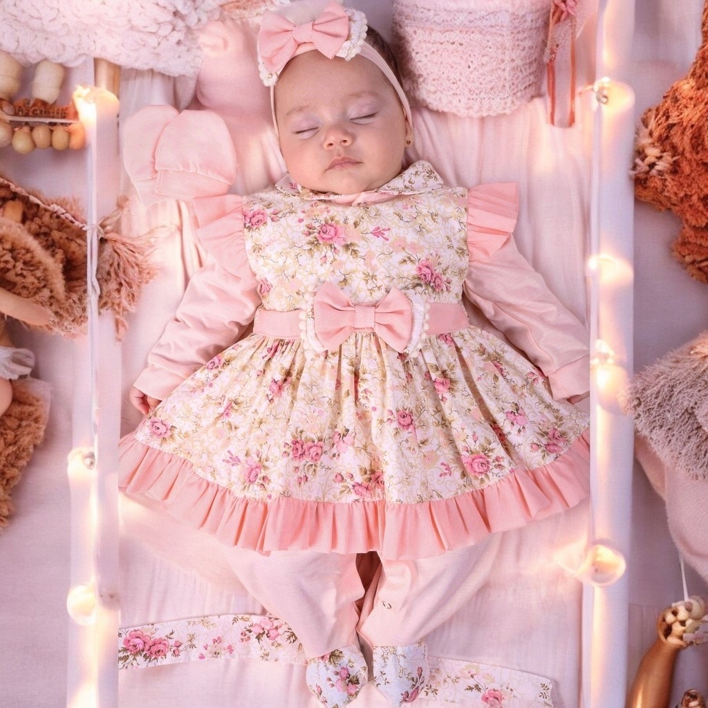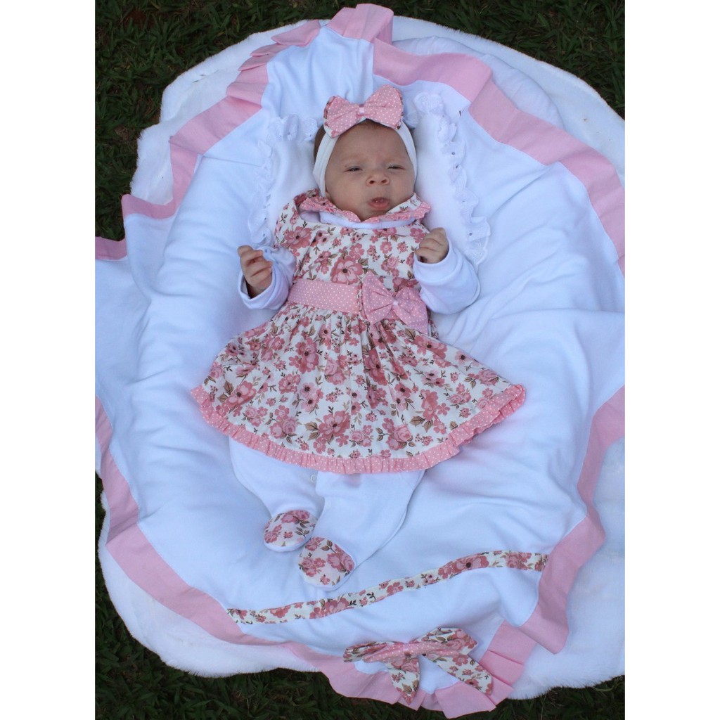 Saida de Maternidade Para Bebe Menina 04 peças Amanda Rosa Floral Roupas Para Bebê