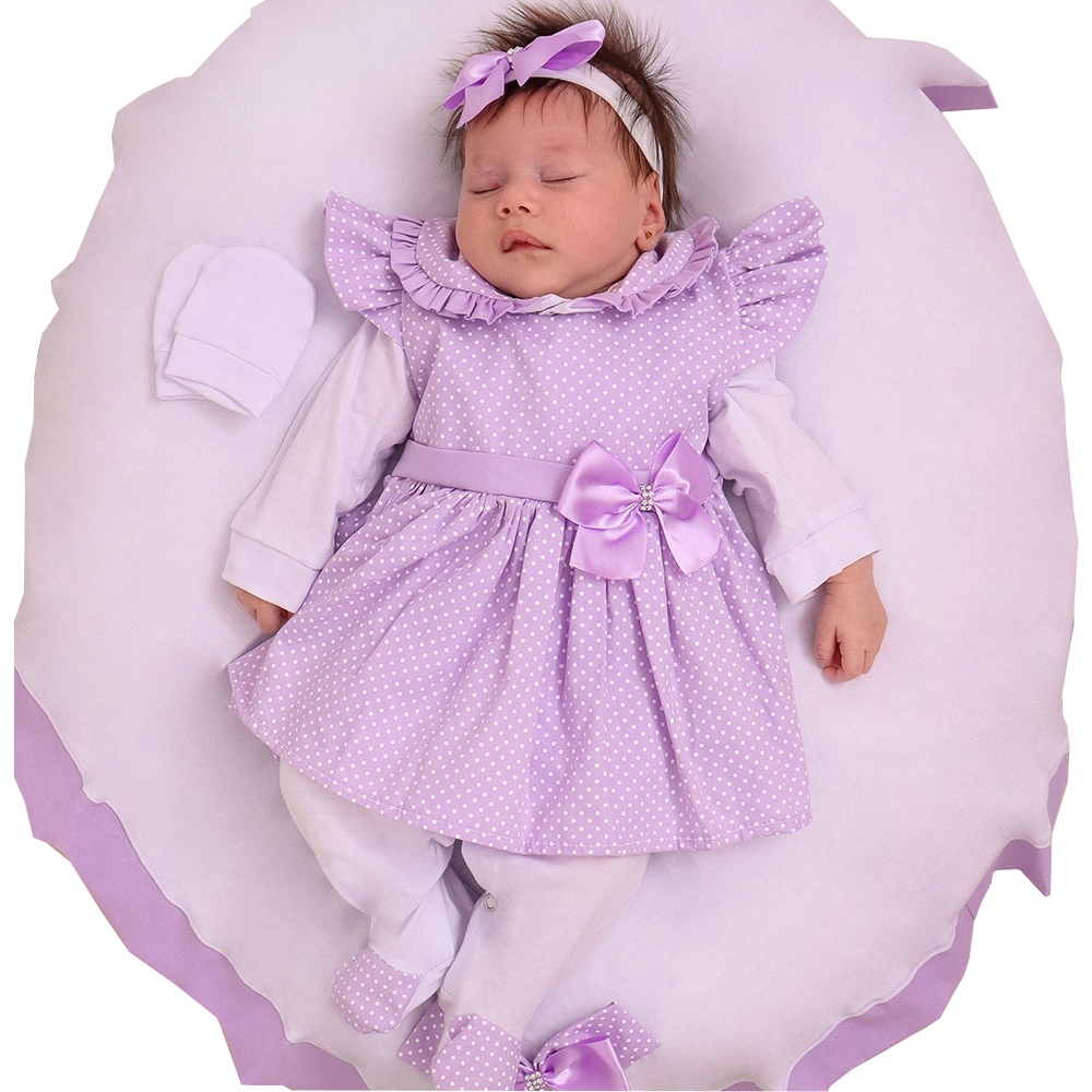 Saída De Maternidade Menina Bebê Maya Poá 05 Peças Lilás Delicada