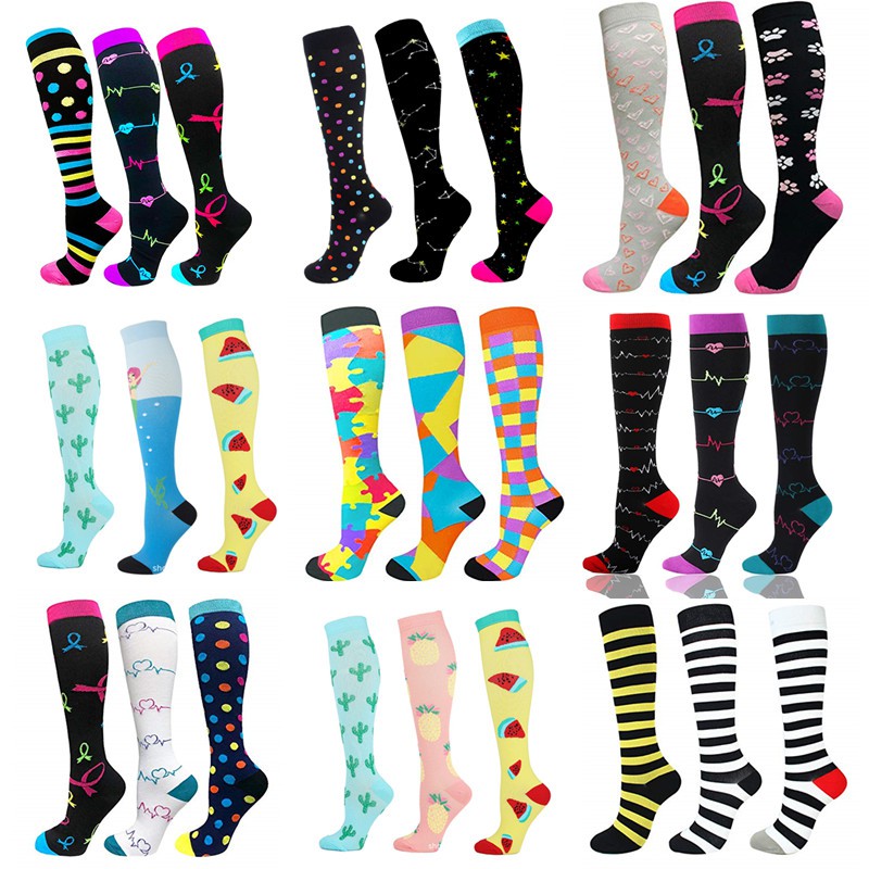 3 Pares Meias De Compressão Homens Mulheres Correndo Esportivas De Ciclismo Joelho De Alta Varizes Alívio Da Dor Plantar Anti-Fadiga moda