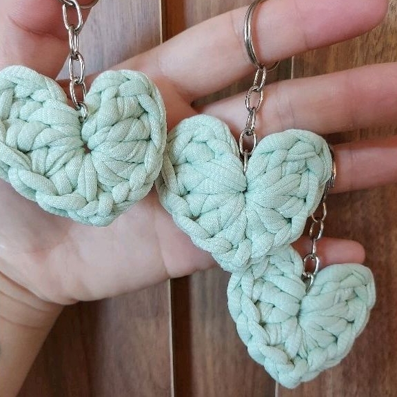 kit 10, 20, ou 30 chaveiros coração de croche em fio de malha, lembrancinha maternidade, cha de bebe, primeira visita de nascimento e mimo para as clientes, chá revelação, menino ou menina, lembrança maternidade,fio de malha Premium de coraçao