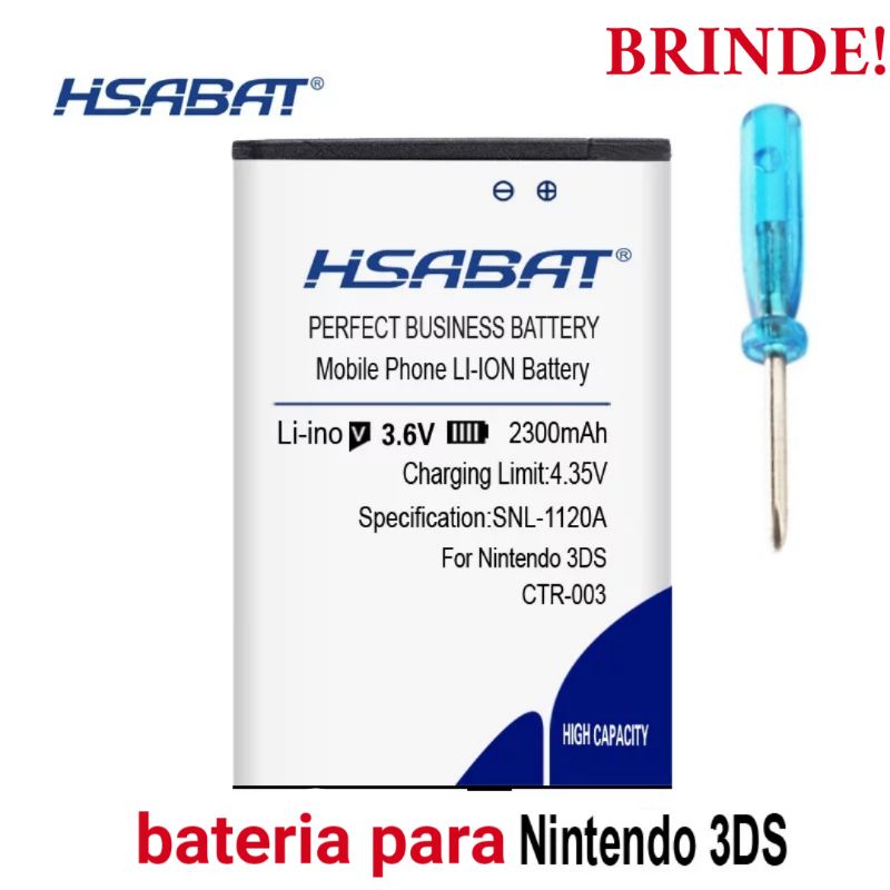 Bateria Nintendo 3DS e 2DS Old Fat HSABAT 2.300mAh
