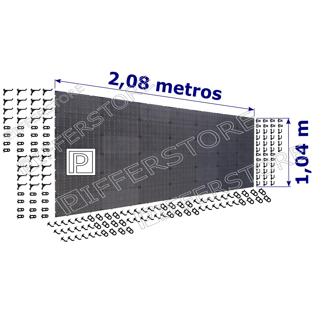 Painel P/ Ferramentas 2,08x1,04 Plástico PRETO C 168 Ganchos