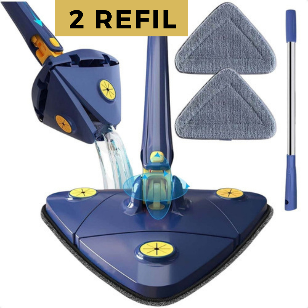 Mop Esfregão Rodo Triangulo de Limpeza 2 Refil Multiuso Ajustável 360° Lava Seca Cozinha