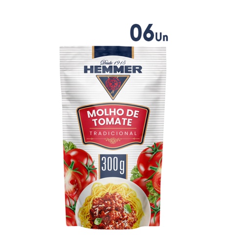 Kit com 06 Molhos de Tomate Tradicional Hemmer Sachê 300g