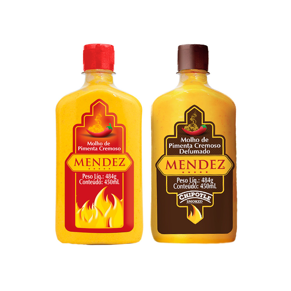 Kit de Molhos de Pimenta Mendez com 2 unidades de 490ml Tradicional e Chipotle