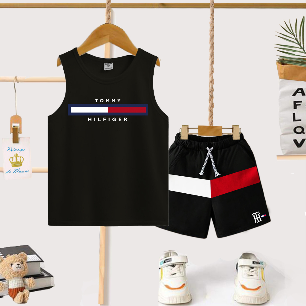Conjunto Infantil Menino Camiseta e Bermuda Cavada Regata Roupa Criança Masculino