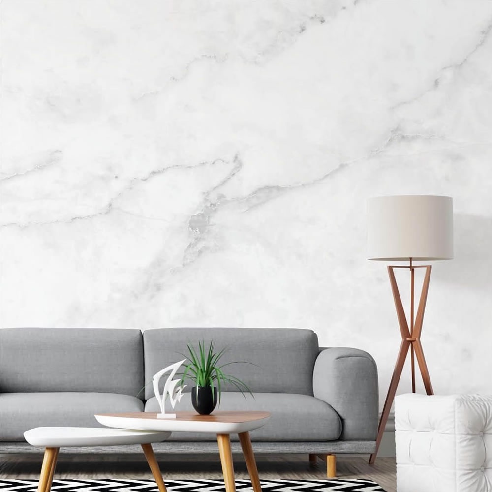 Papel De Parede Adesivo 5 Metros Marmore Branco Lavável 30108
