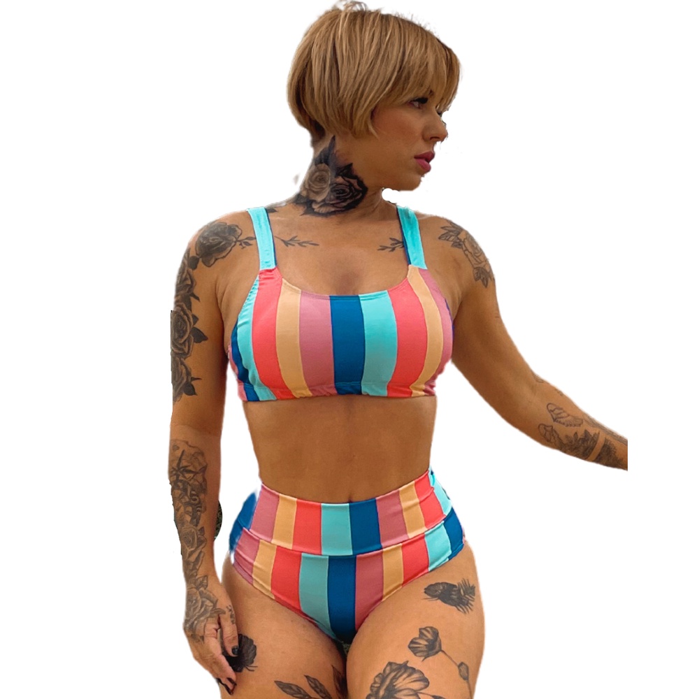 Biquini Hot Pants Bravaa Store Top Faixa Cintura Alta Feminino Praia Verão Cropped 315