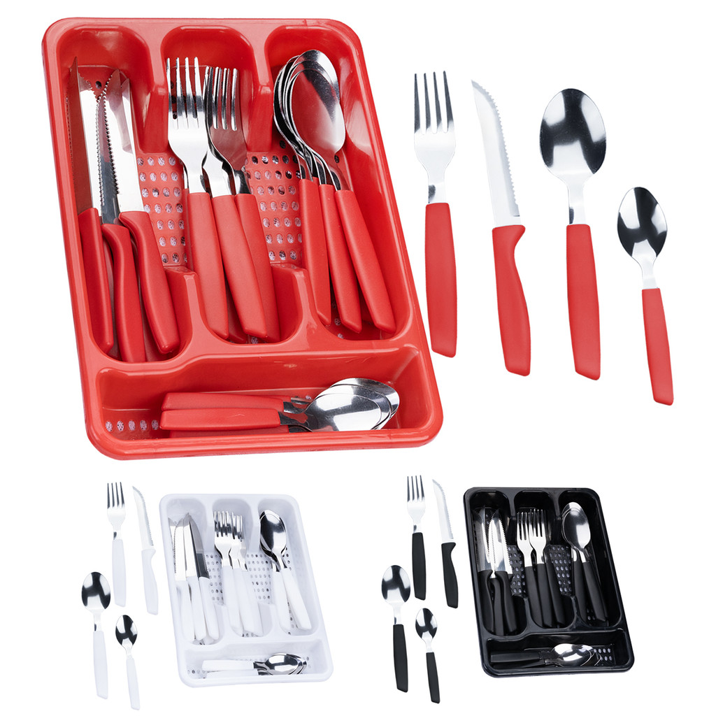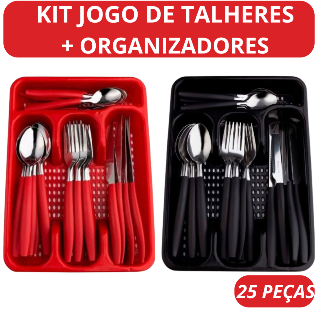 Conjunto de Talheres Kit Faca Colher Garfo em Inox com Porta Talher Gaveteiro Jogo talher para Organizar a Gaveta Cozinha Peças Vermelho Branco Rosa Preto
