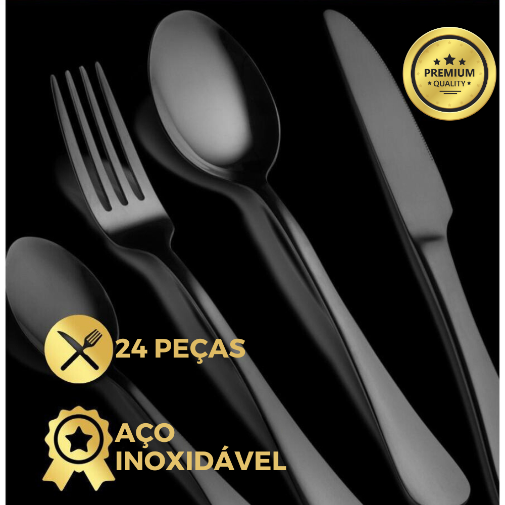 Jogo De Talheres Faqueiro Inox Mesa Luxor Preto 24 Peças 123Util