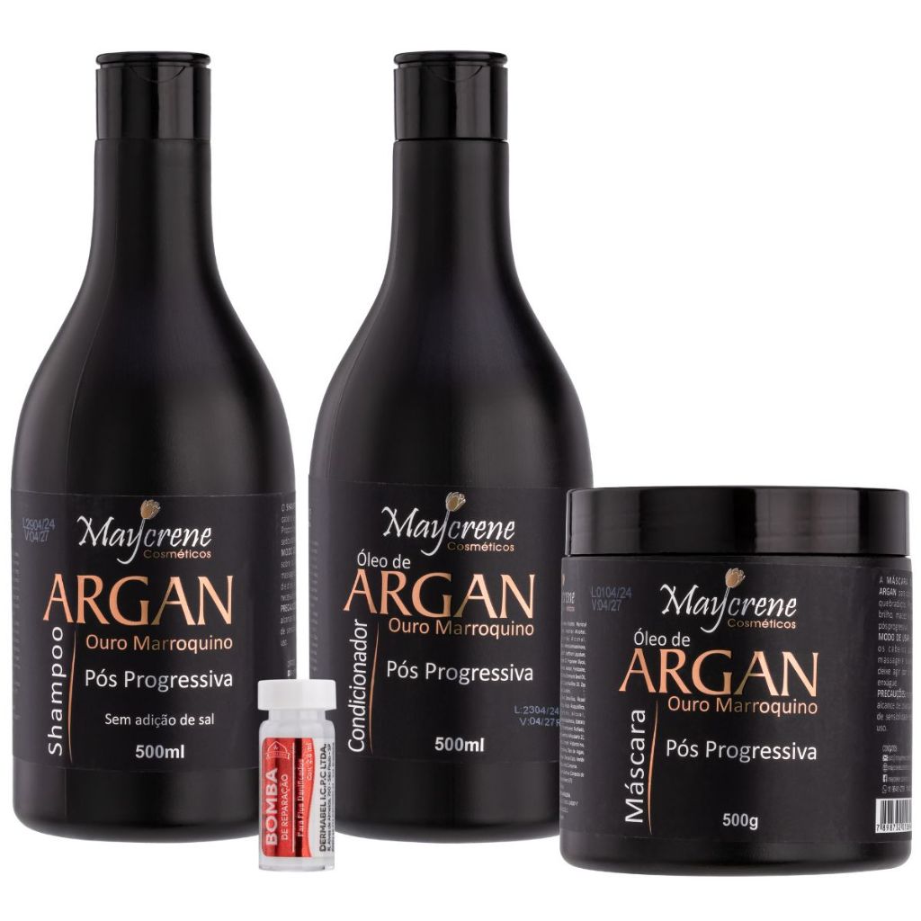 Kit de Tratamento Cabelo Pós Progressiva Óleo de Argan Shampoo,Condicionador E Máscara Maycrene
