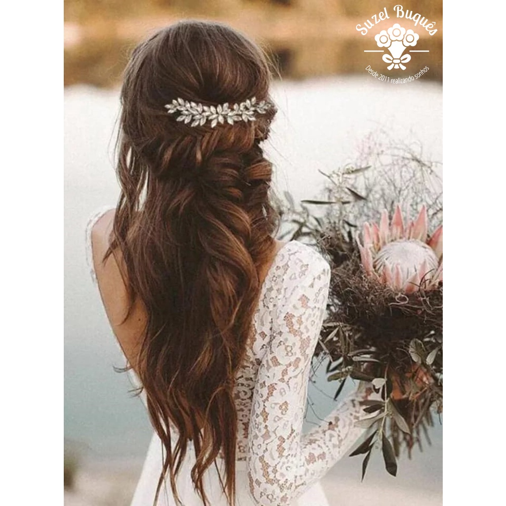 Arranjo de Cabelo Grinalda Noiva Casamentos Penteados