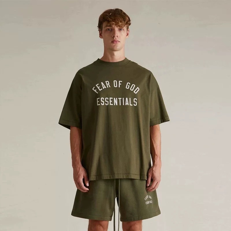 ESSENTIALS FG Loose Cotton Moss Taupe Camiseta Manga Curta FEAR OF GOD FOG Homens Mulheres Estampa Roupa De Casal