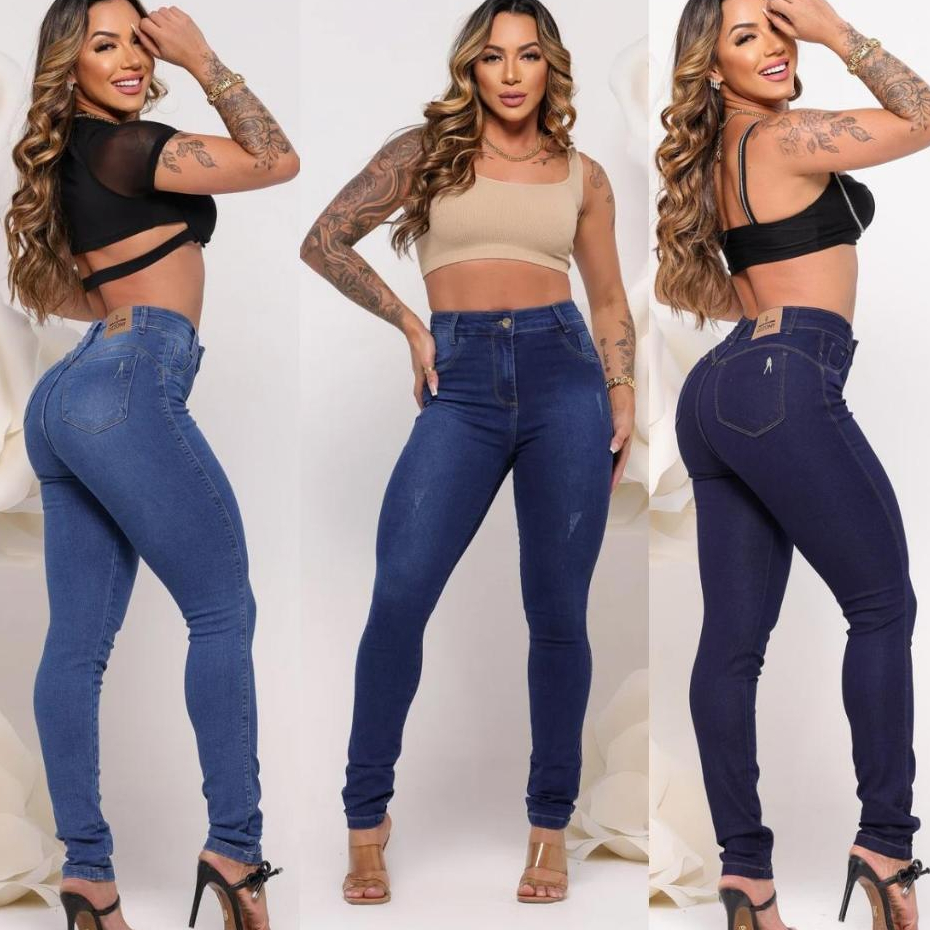 Kit 3 Calça Jeans Feminino Skiny Cintura Alta De Luxo Premium Empina Bumbum