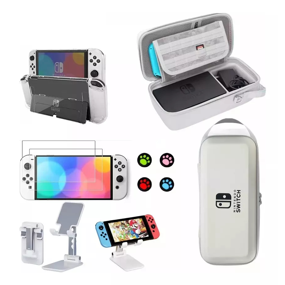 Compatível com o Modelo OLED do Nintendo Switch, 11 em 1, Kit de Acessórios com Estojo de Transporte, Capa Transparente, Protetor de Tela, Suporte para Telefone e Tampas para o Braço