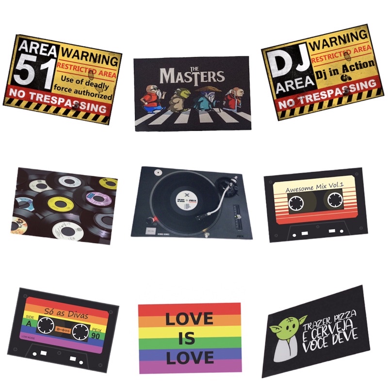 Capacho tapete Geek - Gamer - Fita k7 - Câmera fotográfica - DJ - LGBT - Vinil - Vintage Retrô Atari - mesa Dj - 60x40 sala cozinha