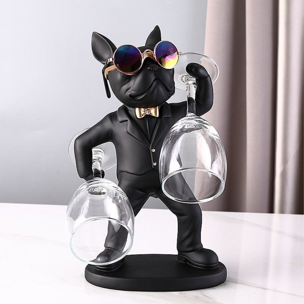 Escultura Decorativa de Cachorro Bulldog Mordomo de Óculos Porta Taças 26,5cm