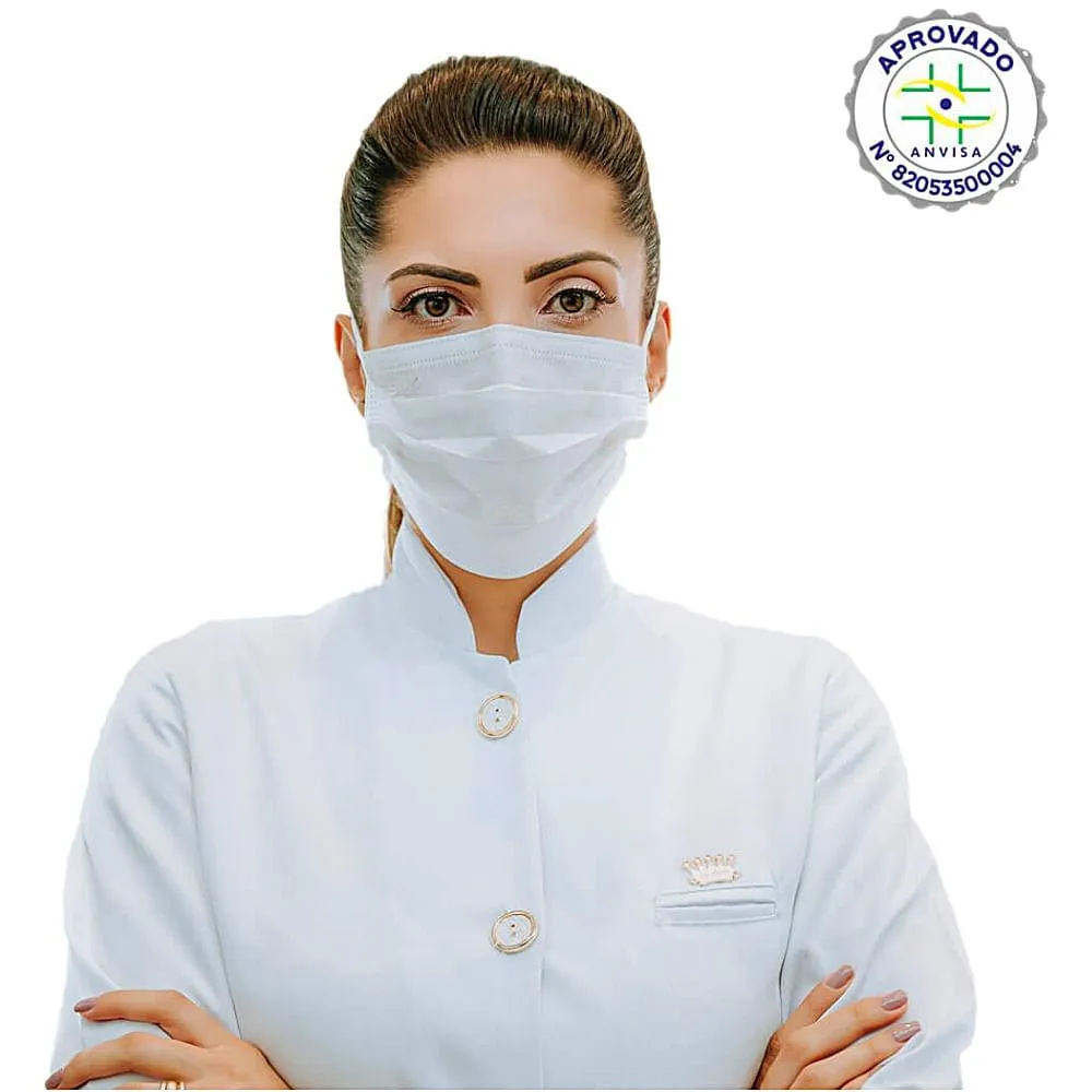 Máscara Adulta Tripla Camada Descartável Branca - 50 Unidades