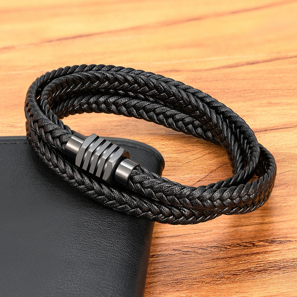 Novo Design Duas Camadas Trançada Corda De Couro Preto Marrom Para Homens De Aço Inoxidável Pulseira Jóias De Amuleto