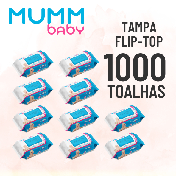 KIT COM 10 LENÇOS/TOALHAS UMEDECIDAS MUMM BABY C/100 TAMPA FLIP -TOP