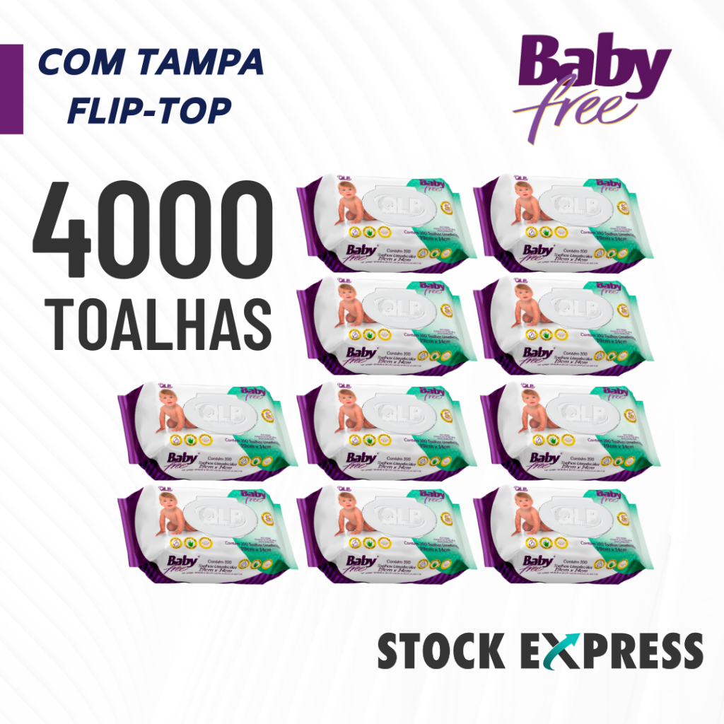 LENÇOS/TOALHAS UMEDECIDAS KIT COM 10 BABY FREE C/100unidades TAMPA FLIP -TOP