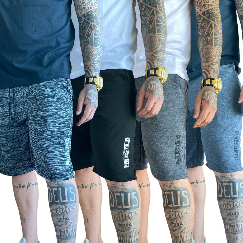 Kit 4 Bermudas Masculinas Moletom Moletinho Elástico Amarração Treino Academia