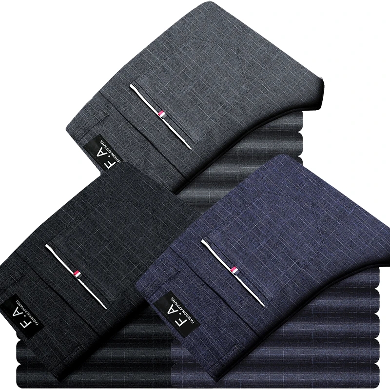 Estoque Pronto Calças Homem Casual Slim Fit Comprido Negócios Algodão Simples Chinos Formais
