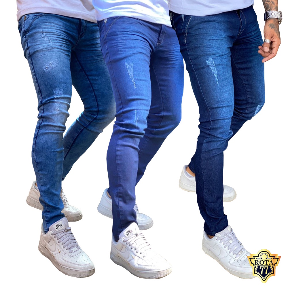 Kit 3 Calças Jeans Masculina Skinny C/ Lycra Elastano Slim Fit 2021