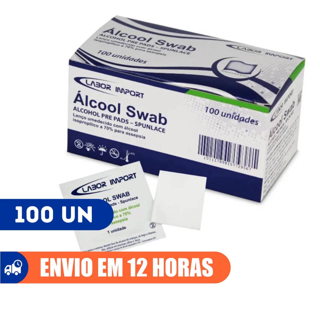 Álcool Swab 70% Saches Lenços Umedecidos 100 unidades Labor Import
