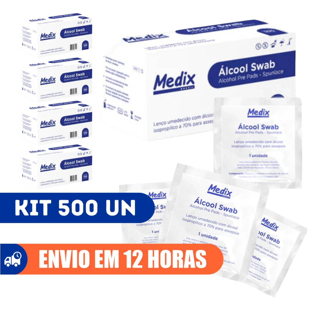 Álcool Swab 70% Saches Lenços Umedecidos 500 unidades Medix