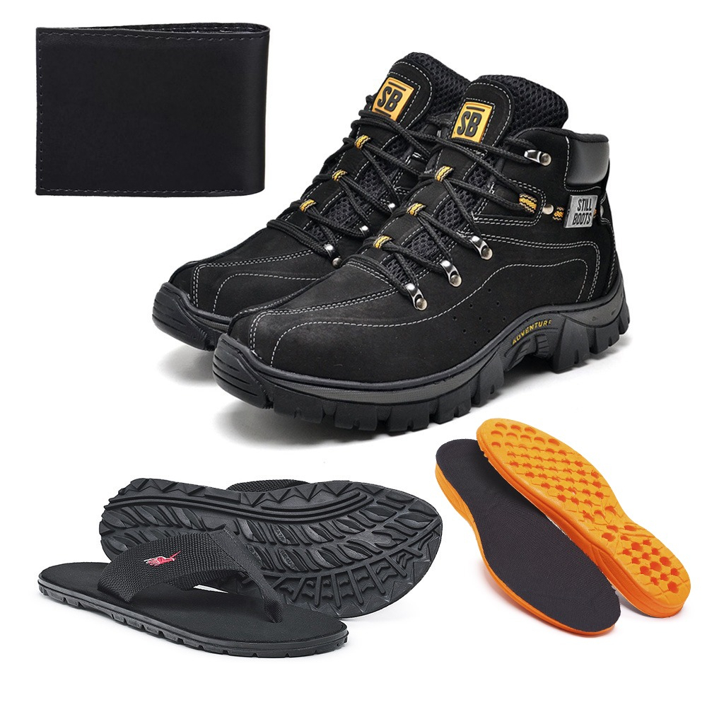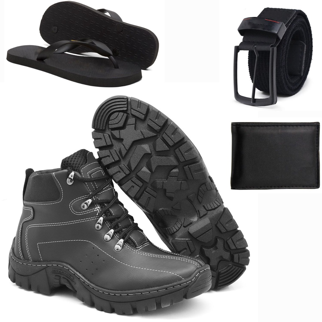 Kit Bota Coturno Masculino Adventure Extreme Mais Chinelo e Carteira