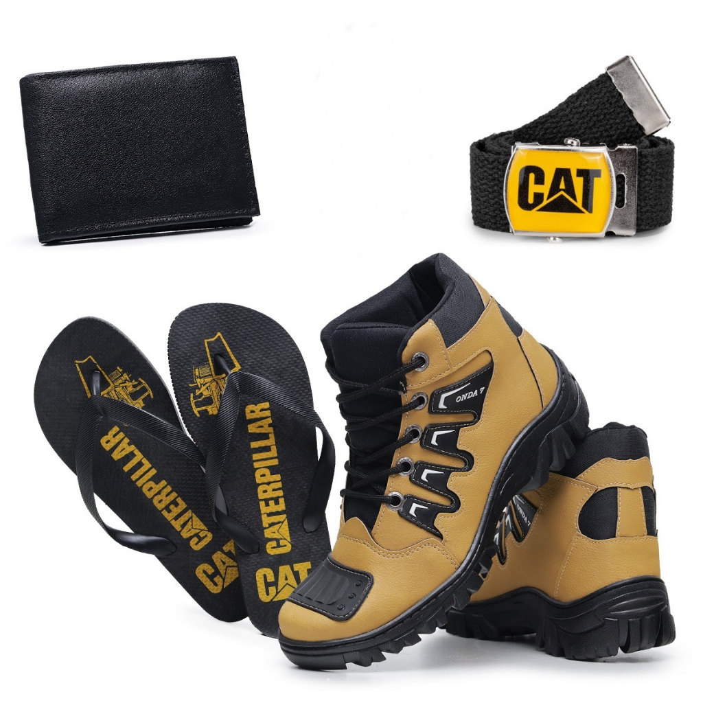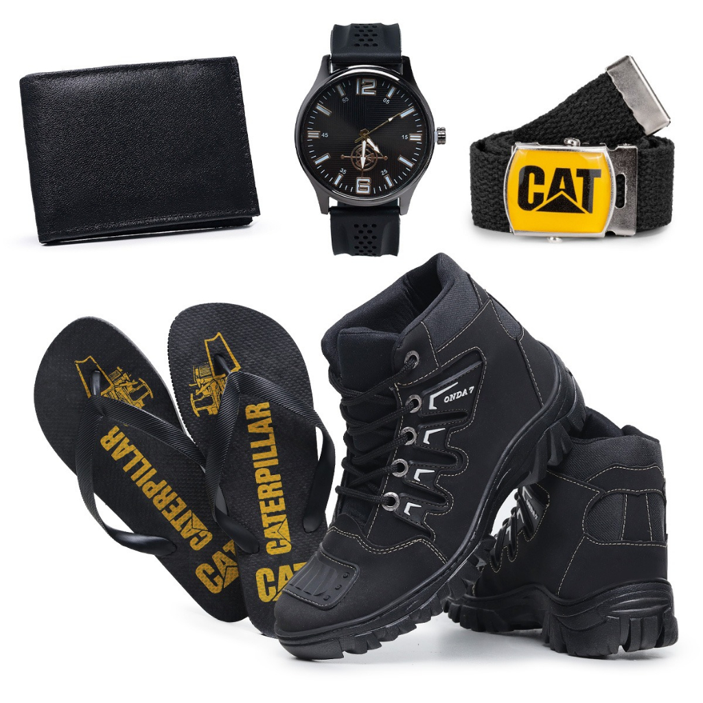 Kit Bota Coturno Masculino Caterpillar Adventure Onda7 + Chinelo + Carteira + Cinto e Relógio