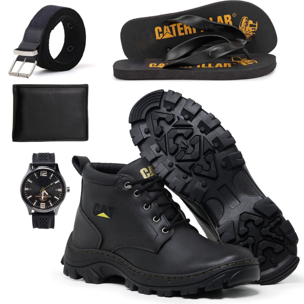 Kit 4 com Bota/Coturno Caterpillar + Chinelo Carteira Cinto e Relogio