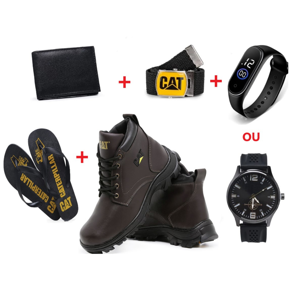 Kit Coturno Masculino Caterpillar Conforto Extreme mais Carteira Mais Relógio e Chinelo