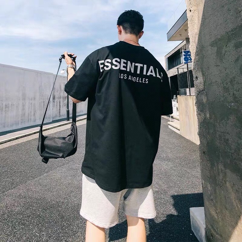 FOG Season 9 FEAR OF GOD Double Thread ESSENTIALS Silicone Impressão Solta Camiseta De Manga Curta Relaxada Verão