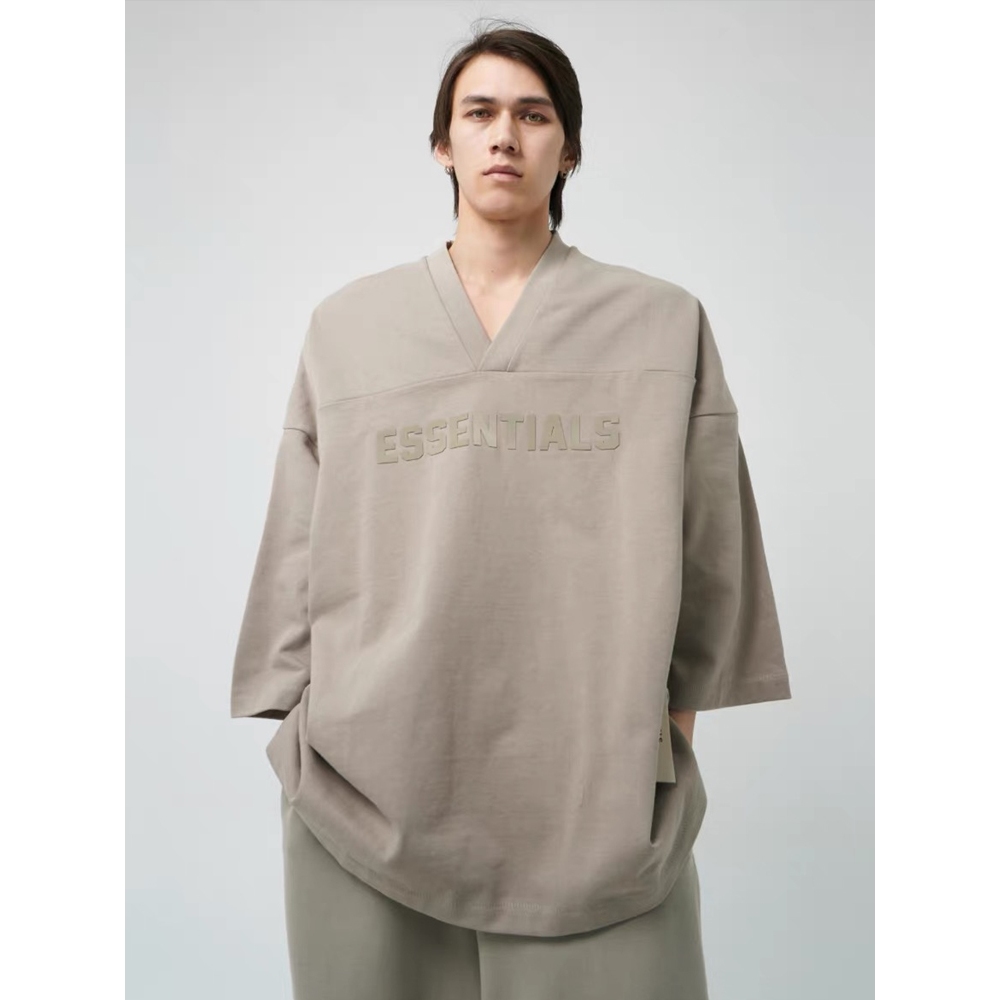 FOG Camiseta De Manga Curta Com Decote Em V Essentials Um Quarto Solta Tamanho Superior