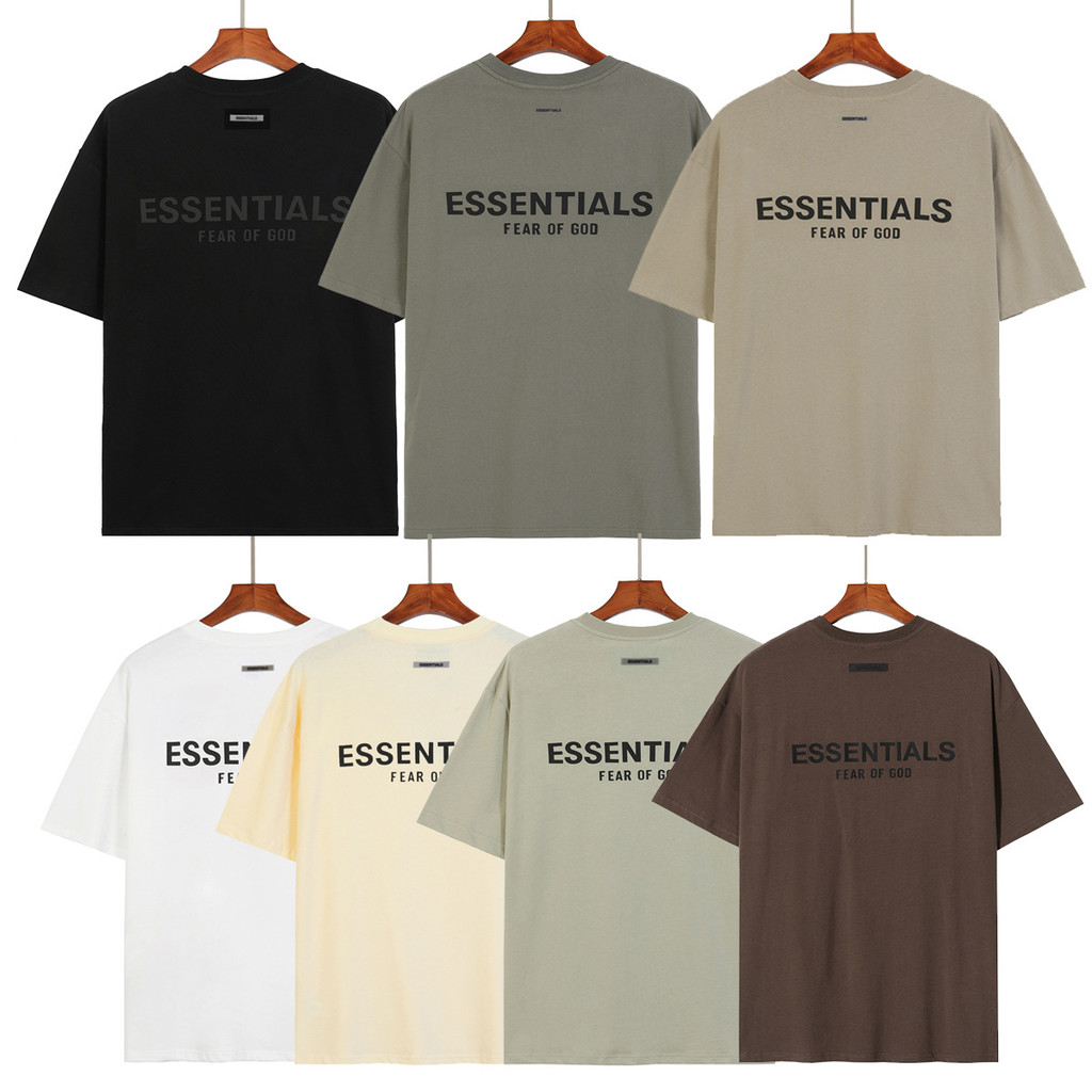 FEAR OF GOD ESSENTIALS Camiseta com Letra Dupla em 3D em Relevo, Manga Curta Solta de Alta Qualidade