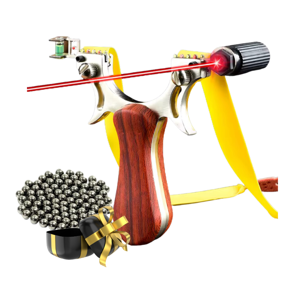 Estilingue Atiradeira Profissional Bodoque M42 com Mira Laser, Nível e 200 Esferas de Aço