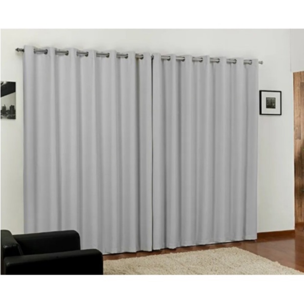 Cortina Black out Para Sala e Quarto 3,00x2,70Tecido Blecaute Cinza Gelo