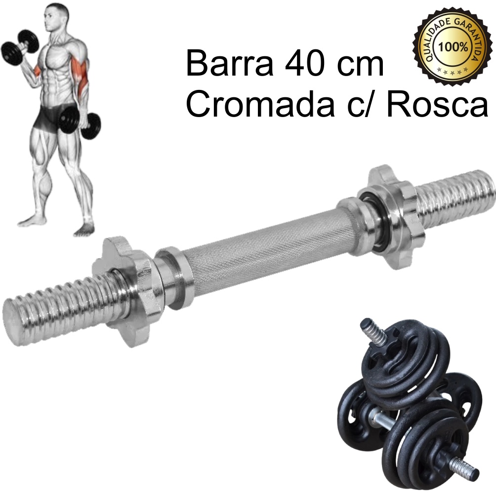 Barra Halter 40cm Maciça Cromada Com Rosca Rápida O Par