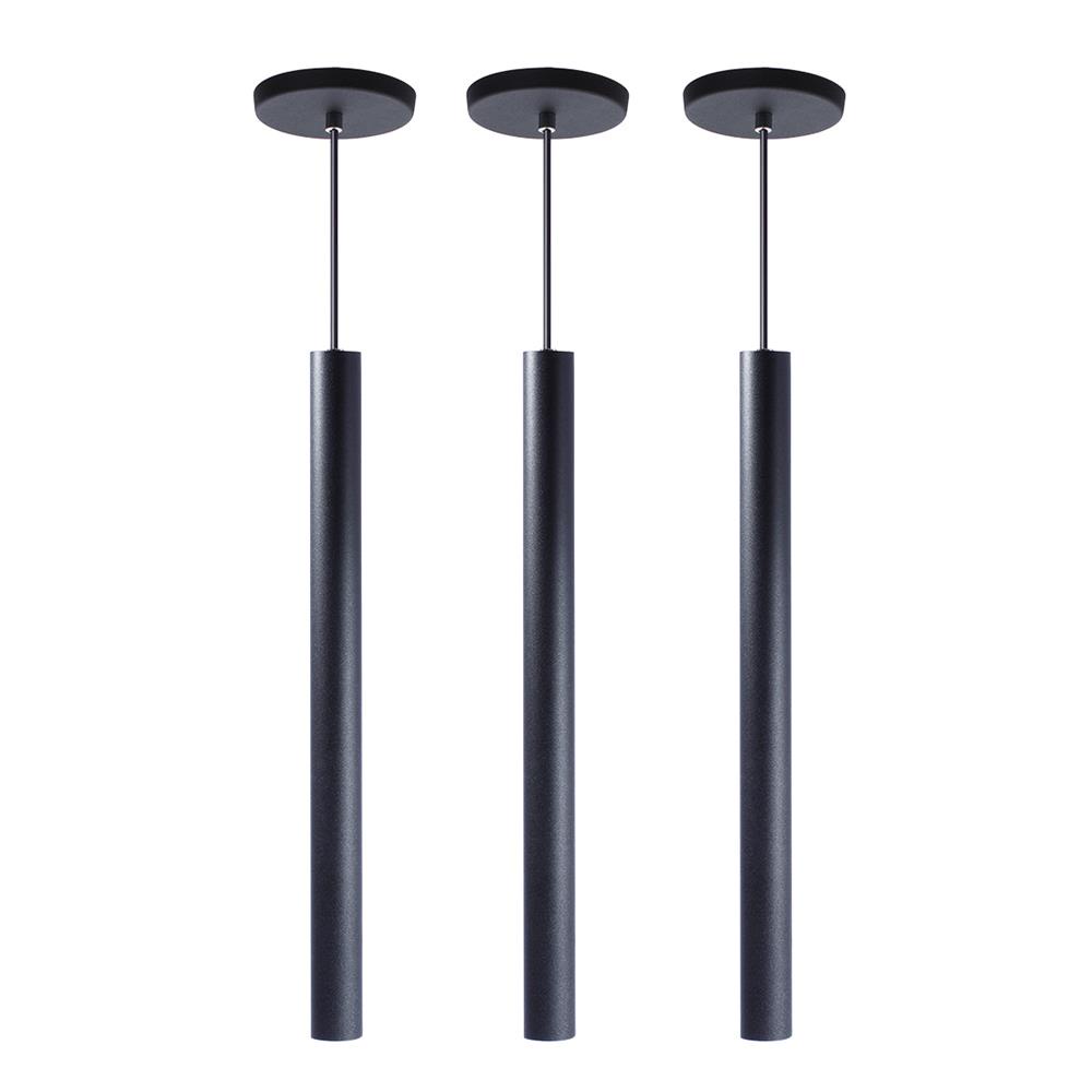 Kit 3 Pendente Luminária Tubo Preto 50 Cm