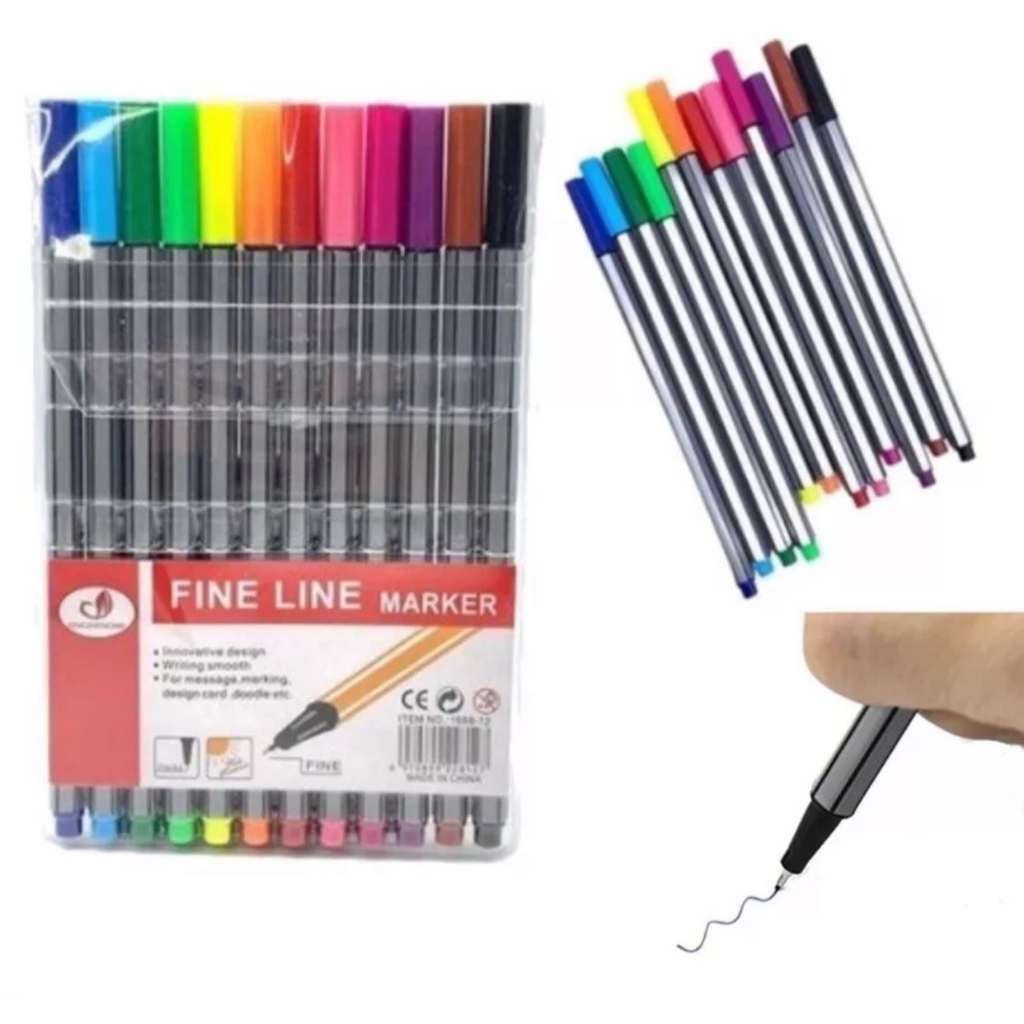 Kit com 6/10/12/18/24 canetas Fine Line Ponta Fina FINELINER 0,4MM