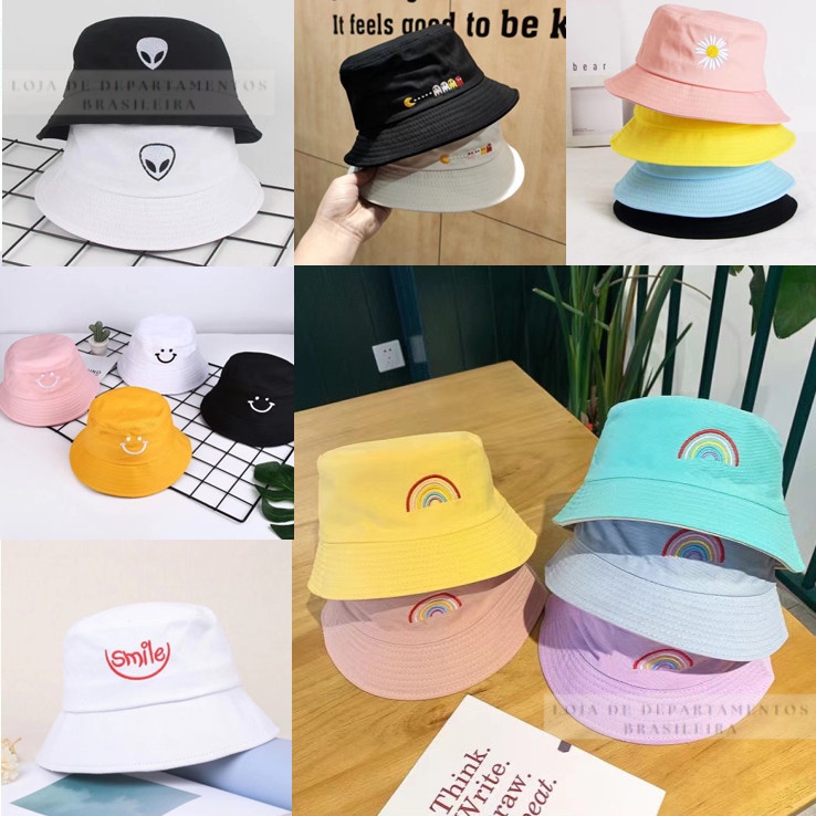 Chapéu Bucket Hat Unissex Barato Estampado Bordado